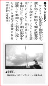 避雷針を発明した科学者ベンジャミン・フランクリンを紹介する記事の中で掲載されております。